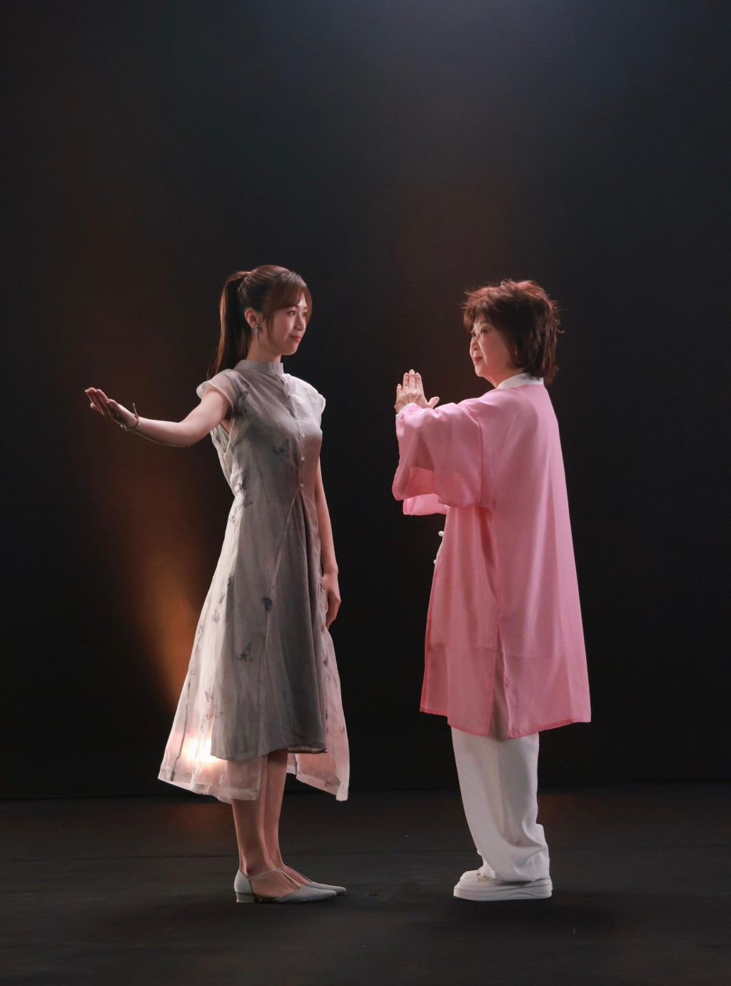 「東張女神」何沛珈頻頻接廣告,近日她與前輩朱咪咪罕有同框,一同為品牌拍攝廣告。從她分享的照片可見,兩人的衣著都帶有中國文化色彩,朱咪咪穿上粉紅色上衣,何沛珈則穿上灰色長裙,散發女神氣質。而朱咪咪氣息非常好,表情多多且笑容滿臉,而且她更穿上現時非常受Gen Z歡迎的「洞洞鞋」款,認真跟得上潮流。
