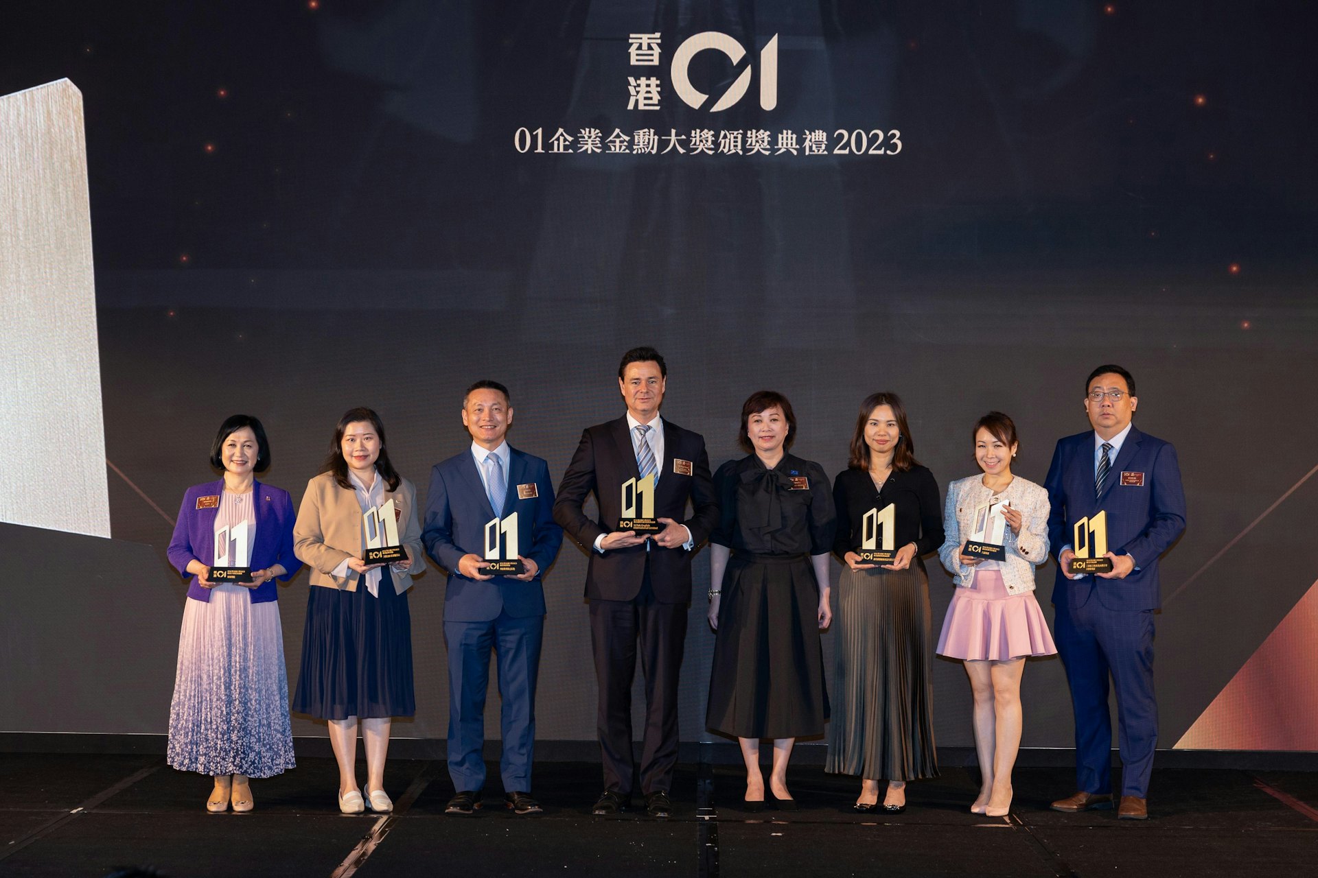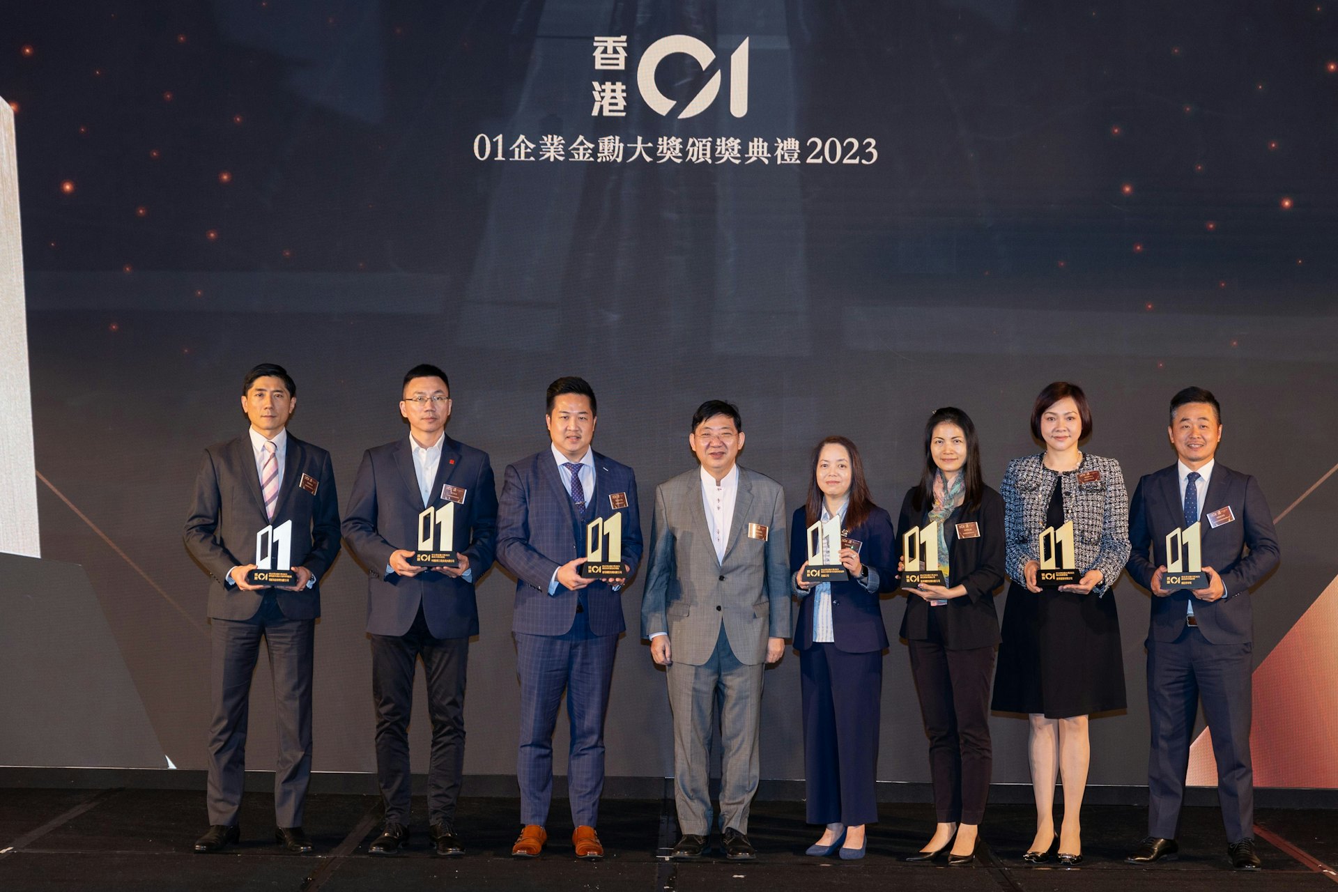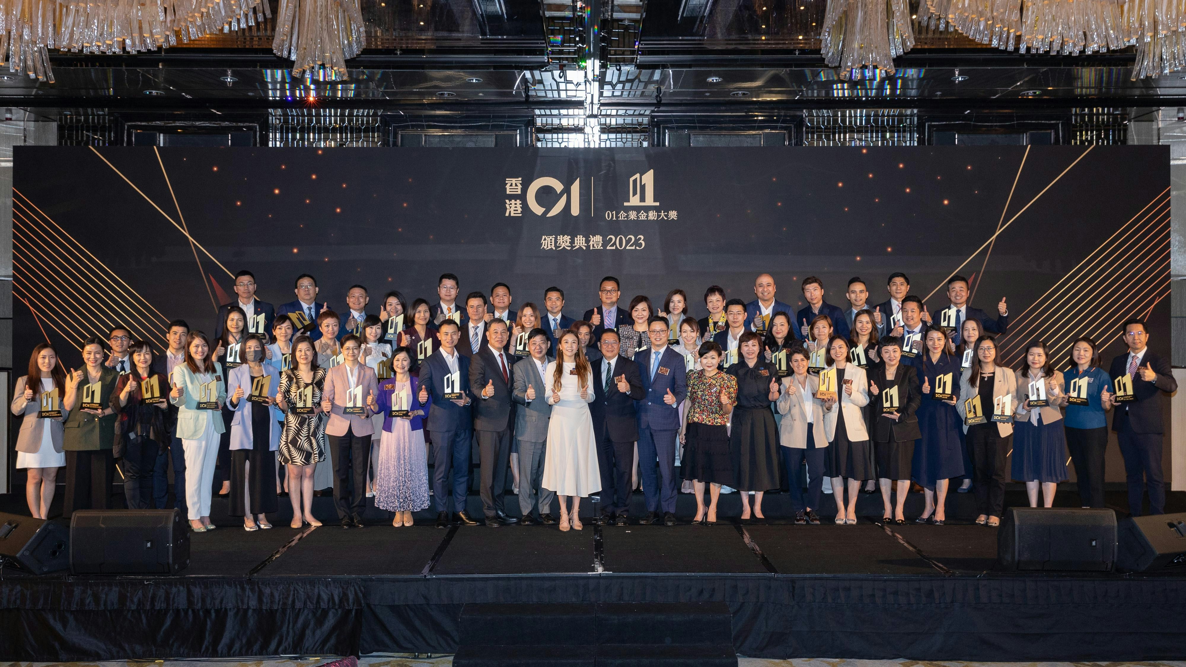 「01企業金勳大獎2023」邀請多位重量級嘉賓出席,包括香港特別行政區政府財政司副司長黃偉綸先生、香港特別行政區立法會議員林健鋒先生、貿易發展局副總裁劉會平先生、香港恒生大學校長何順文教授及消費者委員會總幹事黃鳳嫺女士。頒獎禮上頒發56個「傑出企業大獎」以表彰過去一年堅持發揮創新經營理念,締造卓越成就的一眾香港企業。獲獎企業分佈不同行業,共分為8個組別,包括金融、銀行及保險組別、地產及公用事業組別、資訊科技及電訊組別、特色商場組別、產品及服務組別、餐飲及食品組別、健康生活組別與企業領袖組別。最後由專業評審從各「傑出企業大獎」得獎企業中選出「金勳大獎」得主 HSBC HK。
